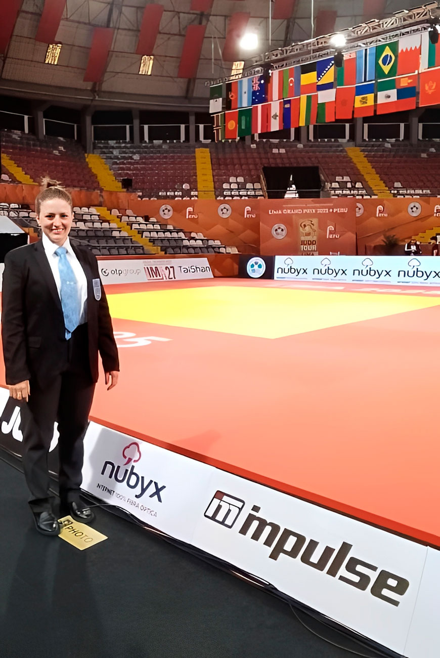 “Eu já estava na faculdade e não me via como competidora ou técnica, mas gosto do ambiente competitivo. Vi na arbitragem uma vertente de poder continuar a contribuir com o judô”, explica.