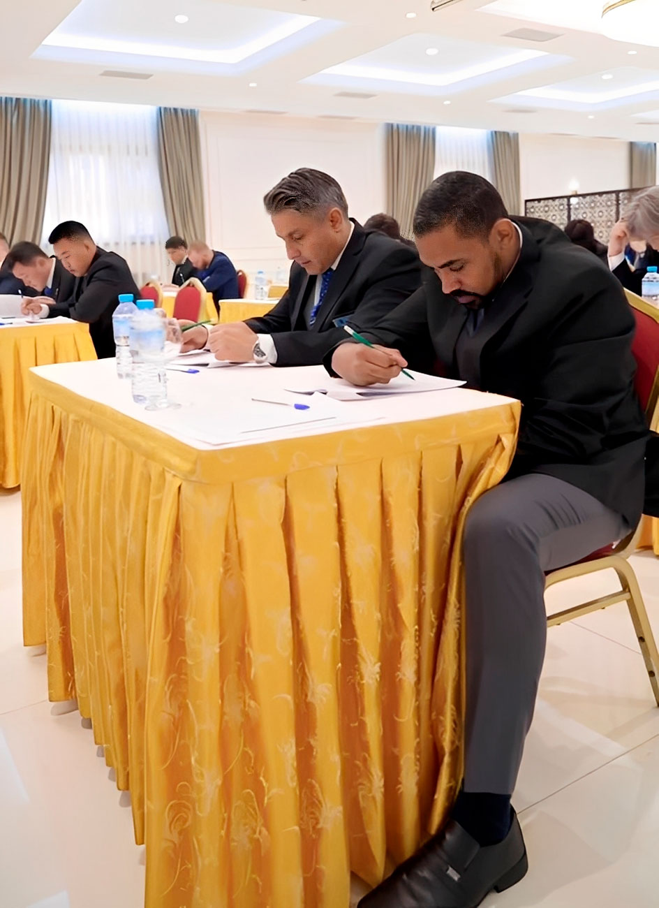 Rodrigo Silva durante a prova teórica do exame para árbitro FIJ B – Continental, realizada em Tashkent, Uzbequistão © Arquivo