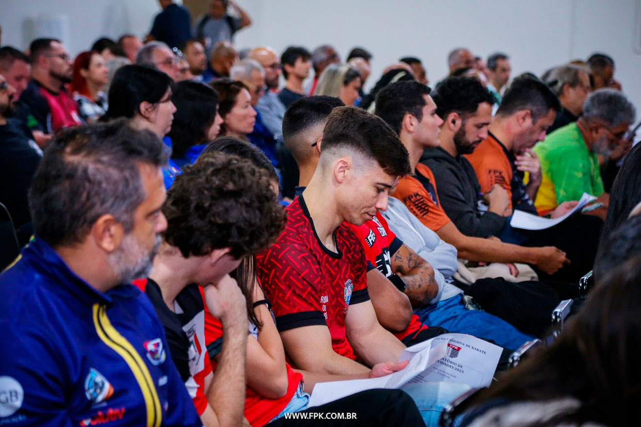 Presença expressiva de dirigentes, professores e lideranças reforça a força institucional do karatê paulista © Leandro Dazzo / FPK