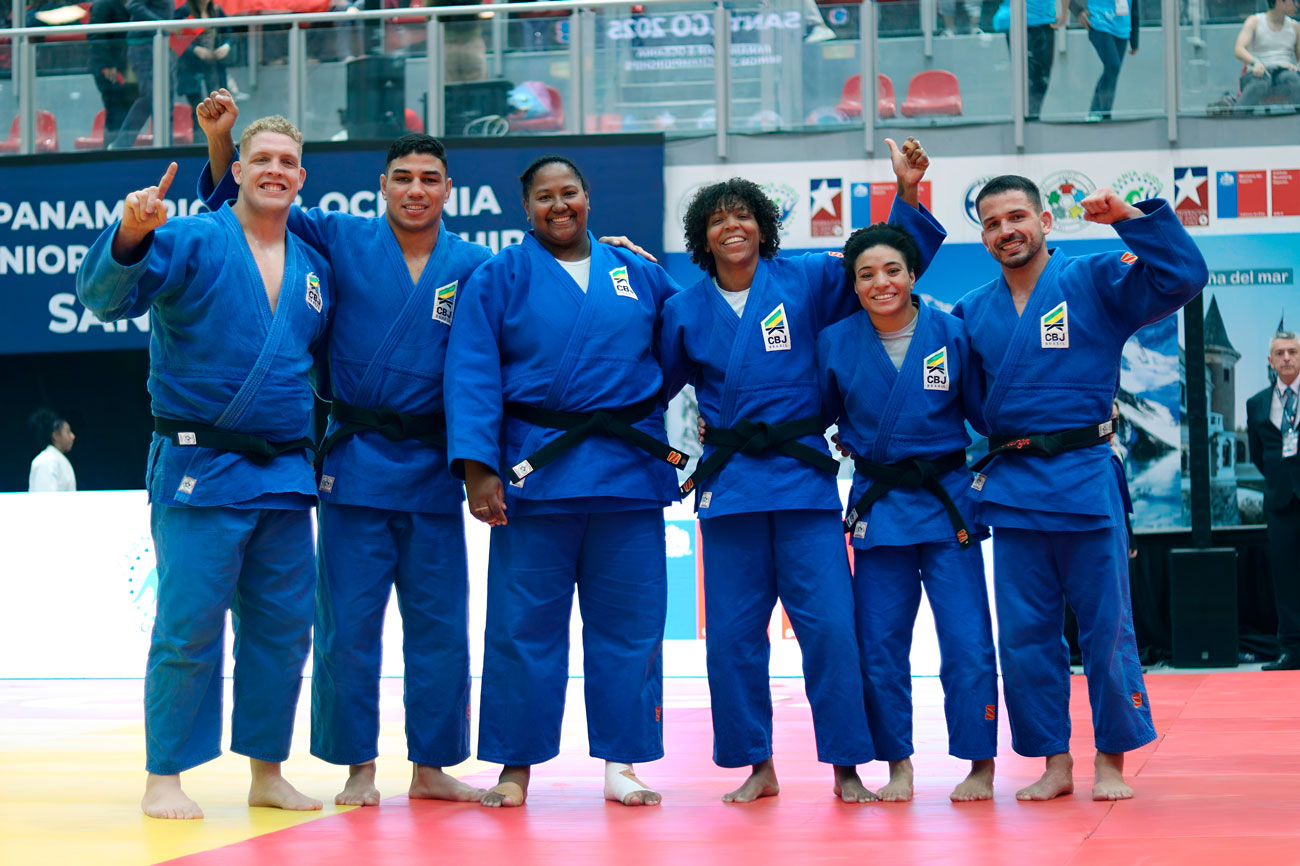 Equipe mista do Brasil celebra o título no Pan-Americano Sênior 2025 © CBJ