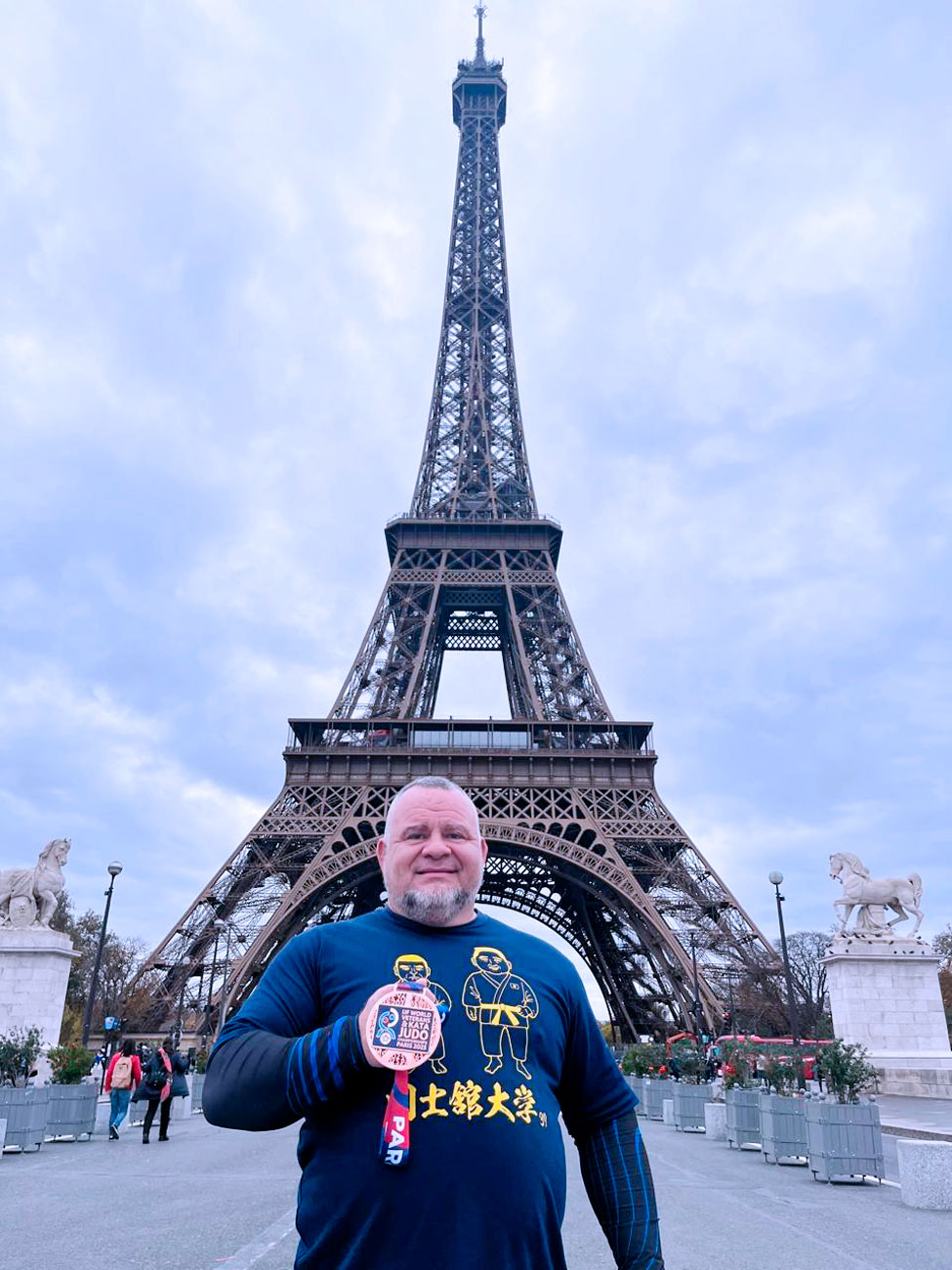 Elton Fiebig celebra a conquista da medalha de bronze em Paris, tendo a Torre Eiffel como testemunha de mais um capítulo de sua trajetória no judô © Kulumbegashvili Tamara / FIJ