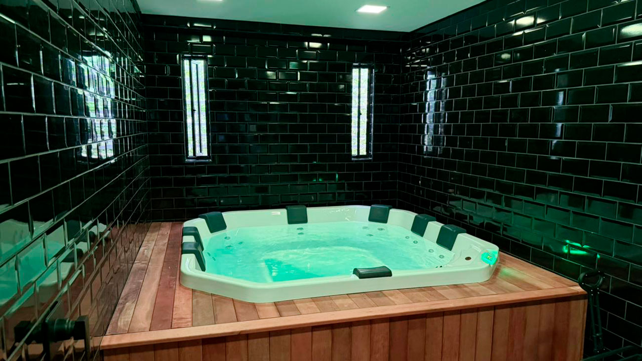 Área de recuperação integrada ao projeto do dojô, com sauna, gelo (ice flow) e jacuzzi, pensada como parte do cuidado contínuo com o corpo © Global Sports