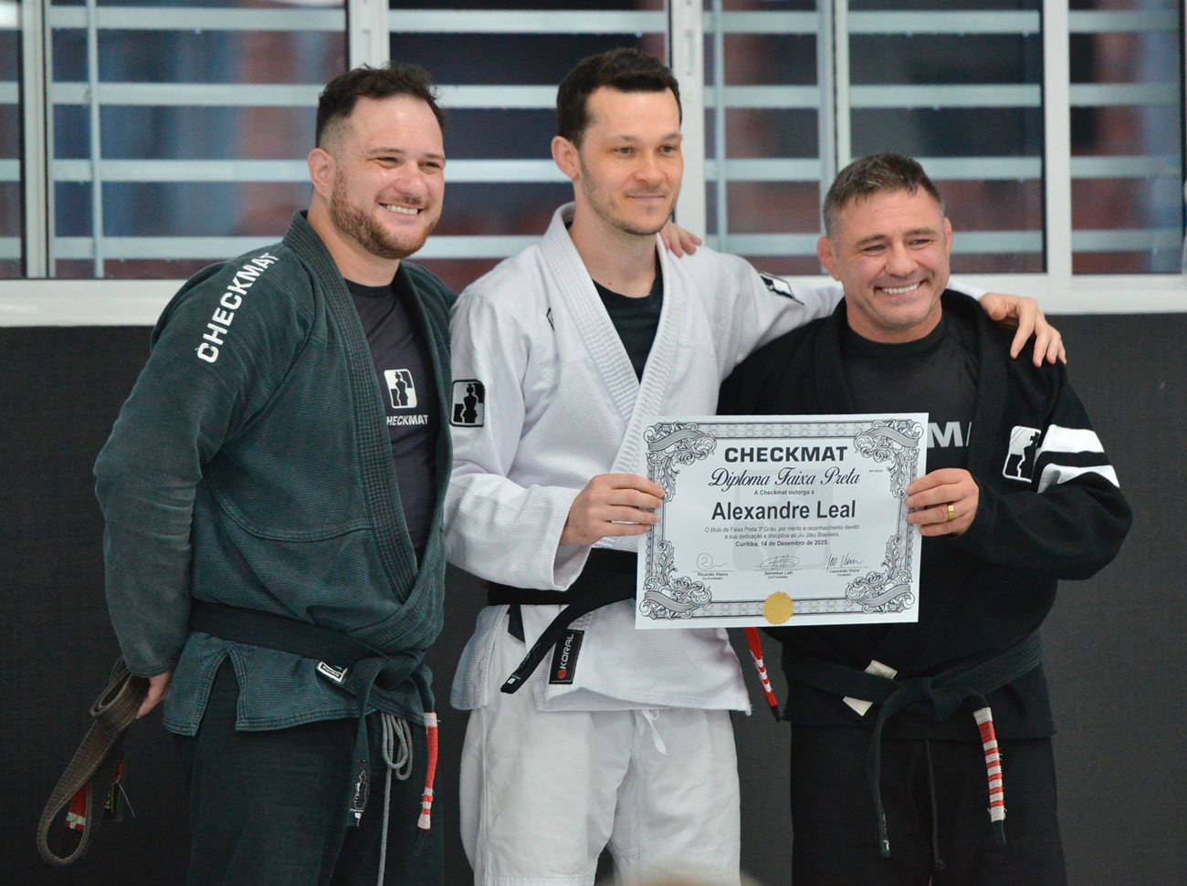 A cerimônia contemplou alunos adultos do mestre Sebastian Lali Checkmat, além de atletas oriundos de filiais da rede na Grande Curitiba, reforçando o caráter sistêmico e integrado do trabalho desenvolvido pela Checkmat Brasil.