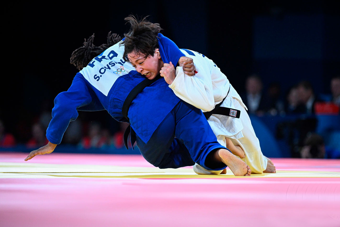 Semifinal dos Jogos Olímpicos Paris 2024: Christa Deguchi enfrenta a francesa Sarah Léonie Cysique em duelo decisivo por vaga na final dos 57kg © Kulumbegashvili Tamara