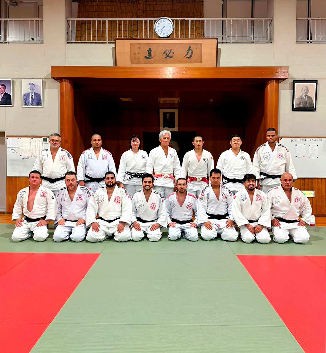 Membros da equipe paulista no dojô do Instituto Kodokan de Osaka © AJCS