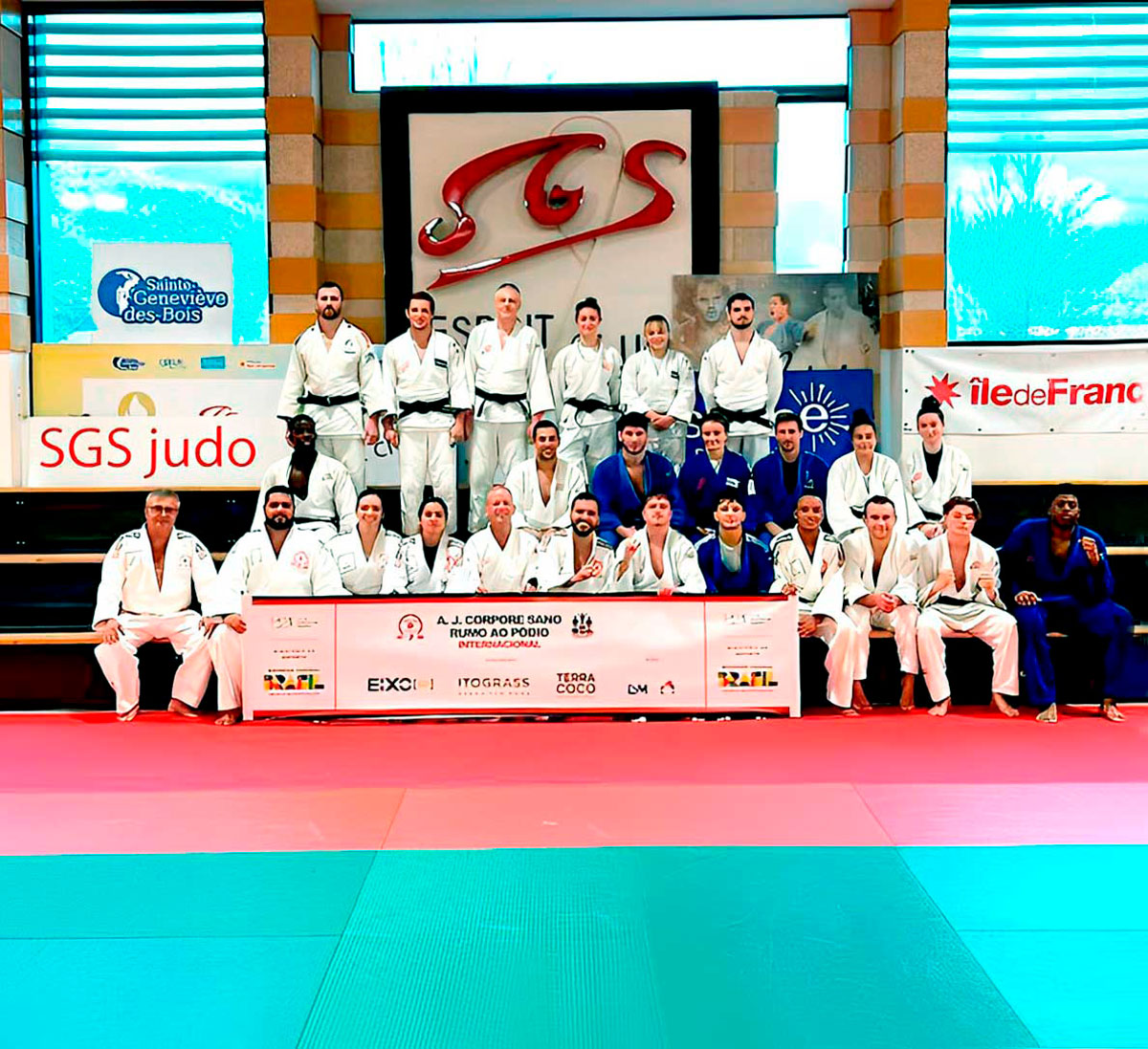 Confraternização com a equipe SGS Judo no Sainte-Geneviève Sports, time campeão por equipes mistas da França, no Dojo Gerard Bailo © AJCS