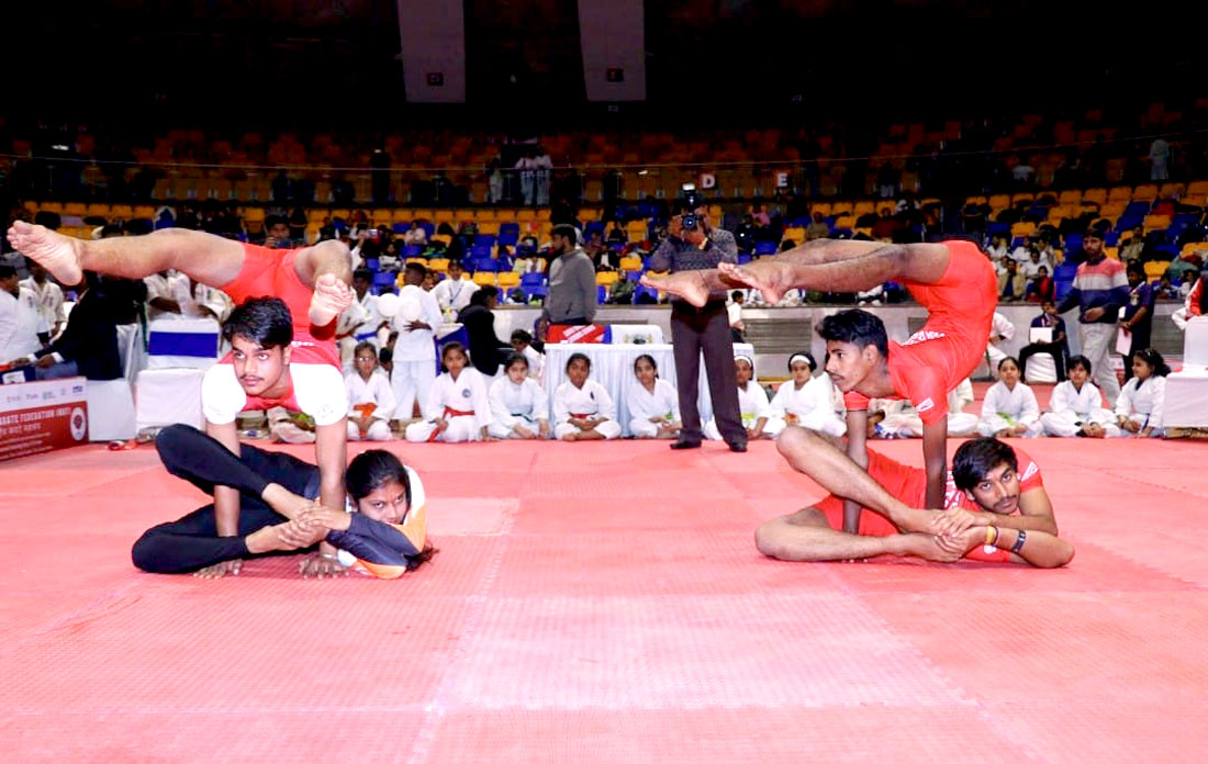 Before the competition, India reaffirms its roots: the yoga presentation at the opening of the event highlights the central role of culture, spirituality and self-control in a country where combat is never detached from inner balance © ITKF