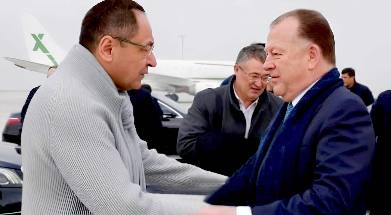 Ministro dos Esportes do Uzbequistão, Adkham Ikramov, recepciona o presidente da Federação Internacional de Judô, Marius Vizer, em Tashkent, evidenciando o apoio institucional do país ao desenvolvimento da modalidade © FIJ