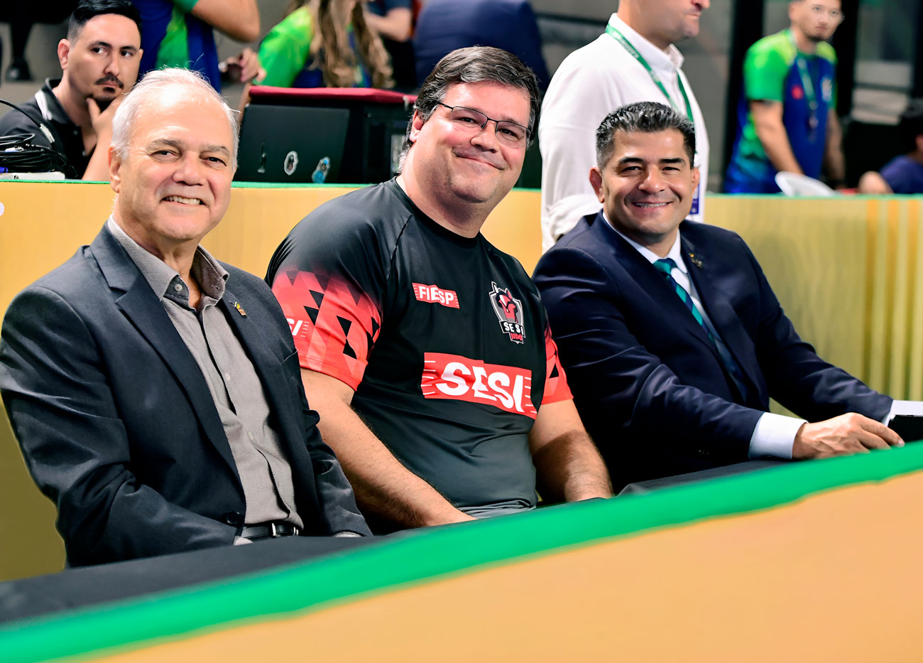 A seletiva foi acompanhada por Paulo Wanderley Teixeira, presidente da CBJ; Victor Soares Leopoldo, coordenador de judô do SESI-SP; e Henrique Guimarães, presidente da FPJudô © Anderson Neves