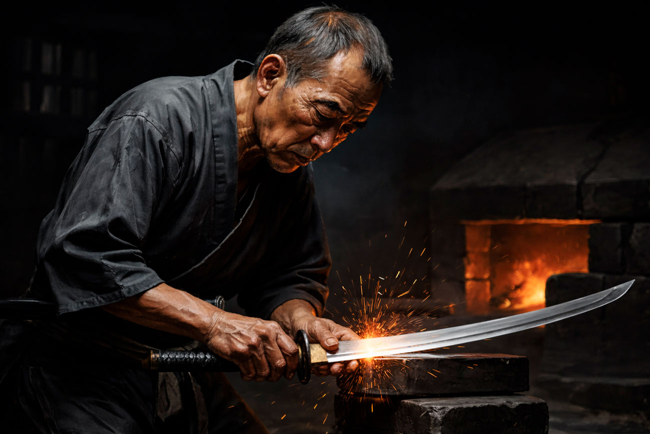 A lâmina é afiada inúmeras vezes. Os movimentos são repetidos até se tornarem naturais. A mente é treinada para não oscilar. Esse processo, longo e silencioso, constrói algo que vai além da técnica: constrói prontidão.
